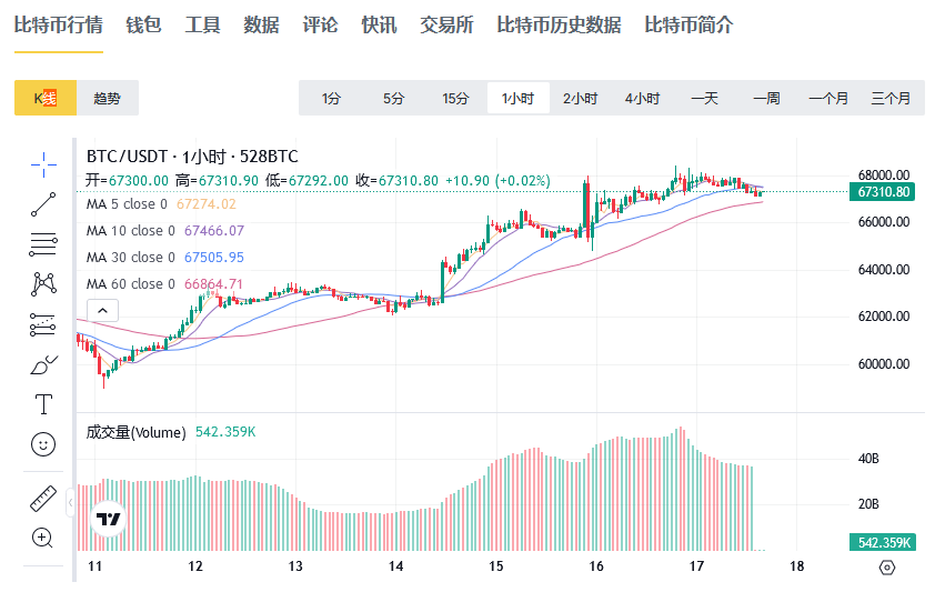 2、交易量圖:直觀反映數(shù)字貨幣的交易活躍度,是判斷市場走勢的重要指標(biāo)之一。