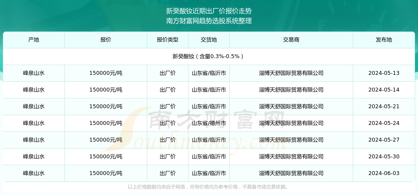 提供了釹的最新價格動態(tài),包括國內(nèi)和國際市場的價格走勢。
