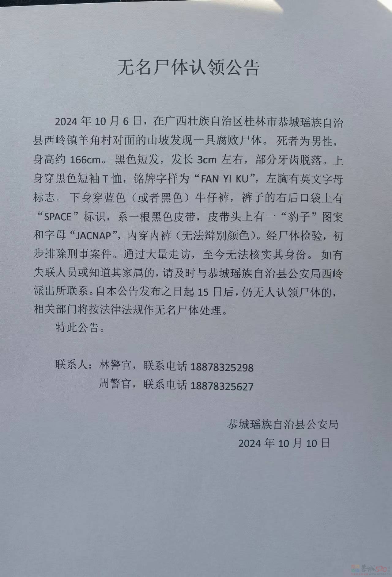 5、公告與通知:確認身份后發(fā)布公告,通知家屬認領尸體。